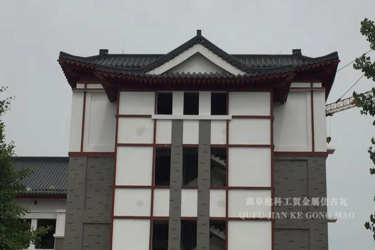 我公司生产的金属仿古瓦采用优质铝合金、铜合金(厚度1.2-2.0mm)经精密模具冲压而成。使用铝合金,是应用最广的一种防锈铝,这种合金的强度高,特别是具有抗疲劳强度:塑性与耐腐蚀性高,不能热处理强化,在半冷作硬化时塑性尚好,冷作硬化时塑性低,耐腐蚀好,焊接性良好,可切削性能不良,可抛光。